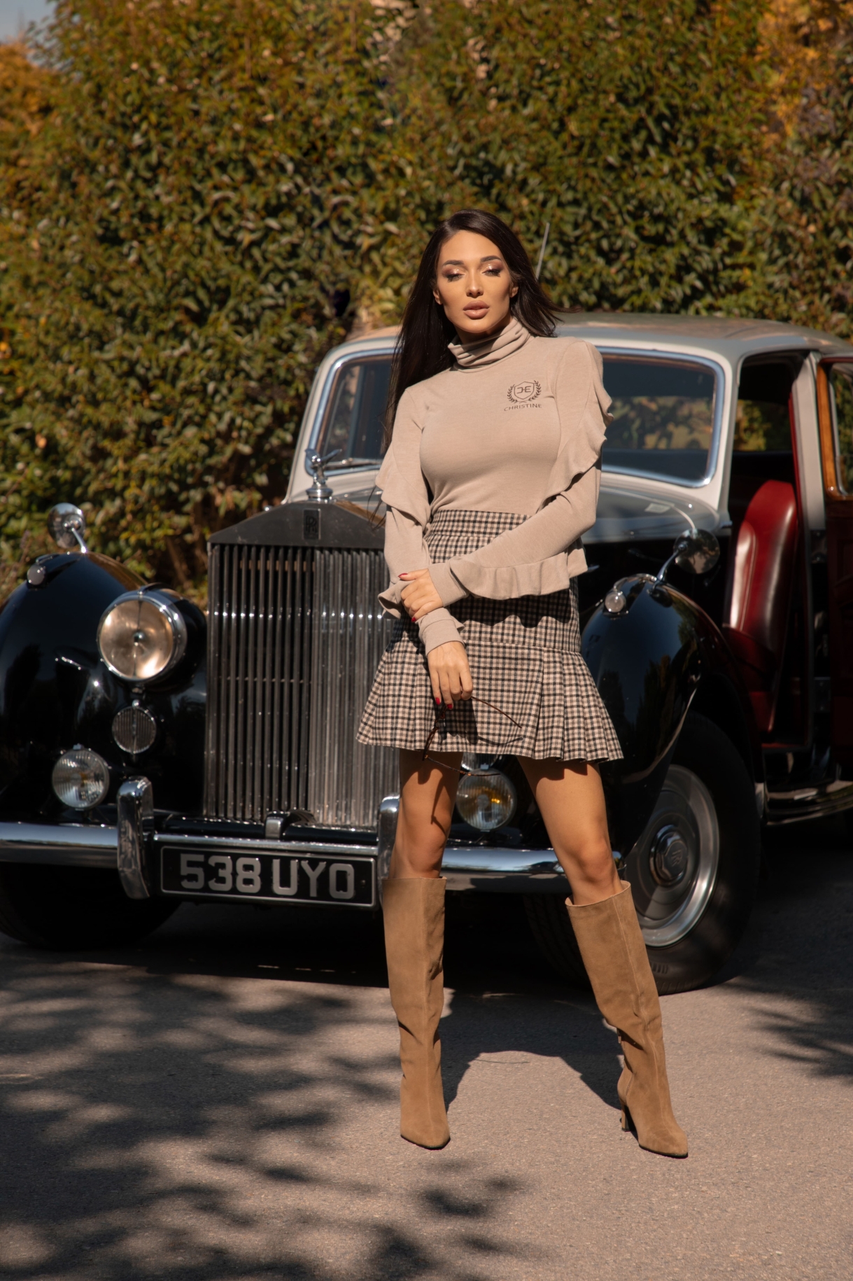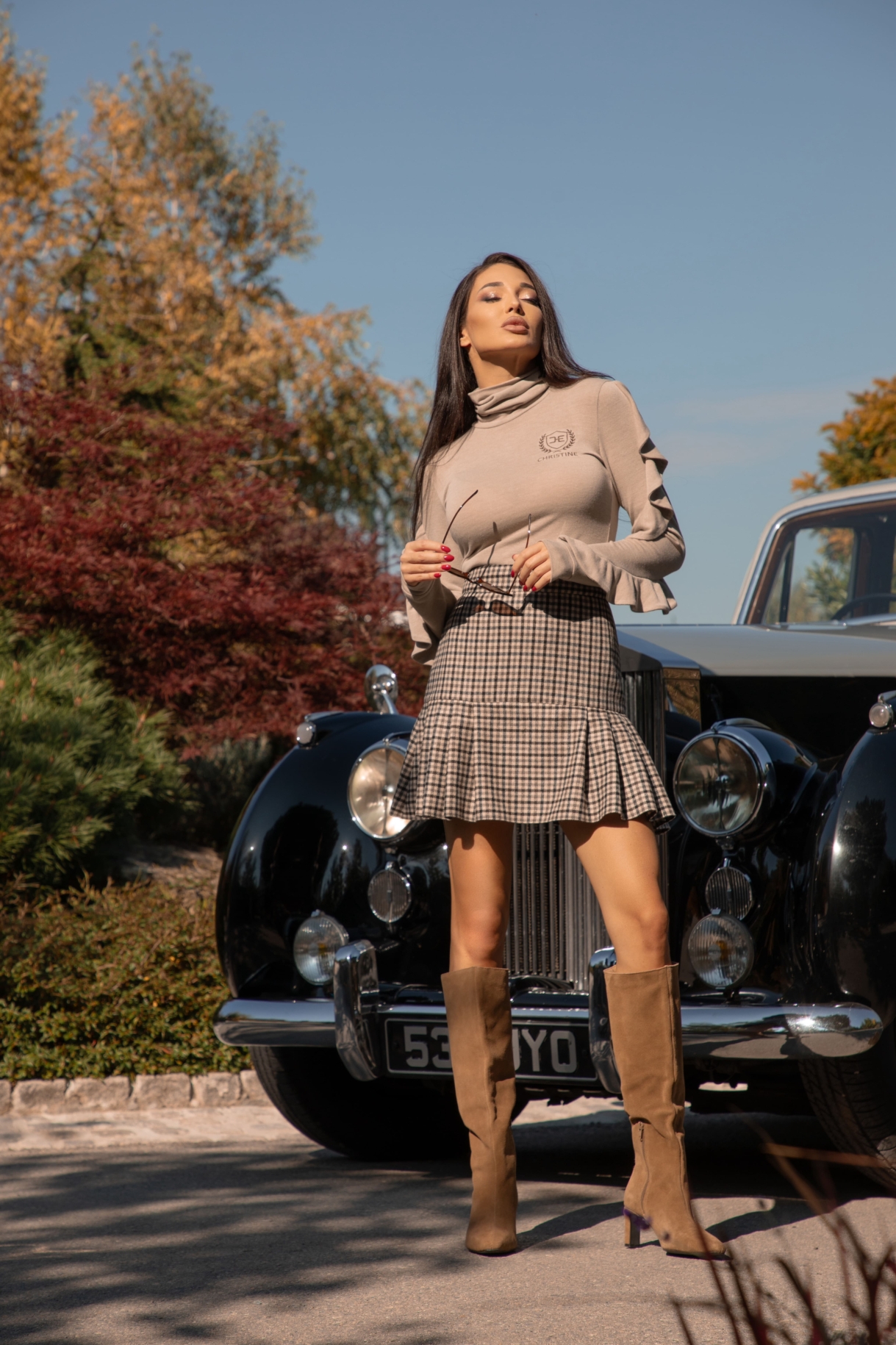 Поло в светлобежово с дълги ръкави с ефектни двойни къдри по ръкава и нежна бродерия CHRISTINЕ в предната част. Моделът е изработен от меко, фино и топло плетиво.